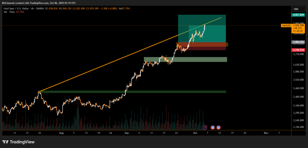 “If prices sustain above the $3,920–$3,950 zone, gold could challenge the psychological $4,000 level in the coming weeks,” According to BITX analysts, that “institutional demand remains firm, especially from central banks diversifying reserves away from the dollar.”