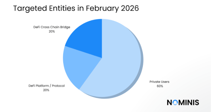Private users bore the brunt of hacking, phishing, and other crypto-theft attempts in February.: Nominis