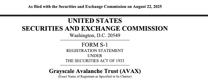 Grayscale Investments, one of the leading cryptocurrency asset managers, has officially filed an S-1 registration with the U.S. Securities and Exchange Commission (SEC) to launch a Spot Avalanche (AVAX) Exchange-Traded Fund (ETF). This move marks another significant step in the growing list of crypto-based investment products that aim to provide traditional market investors with direct exposure to digital assets.