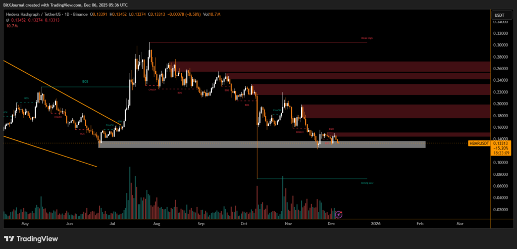 HBAR Holds Critical Demand Zone Despite Heavy Selling Pressure