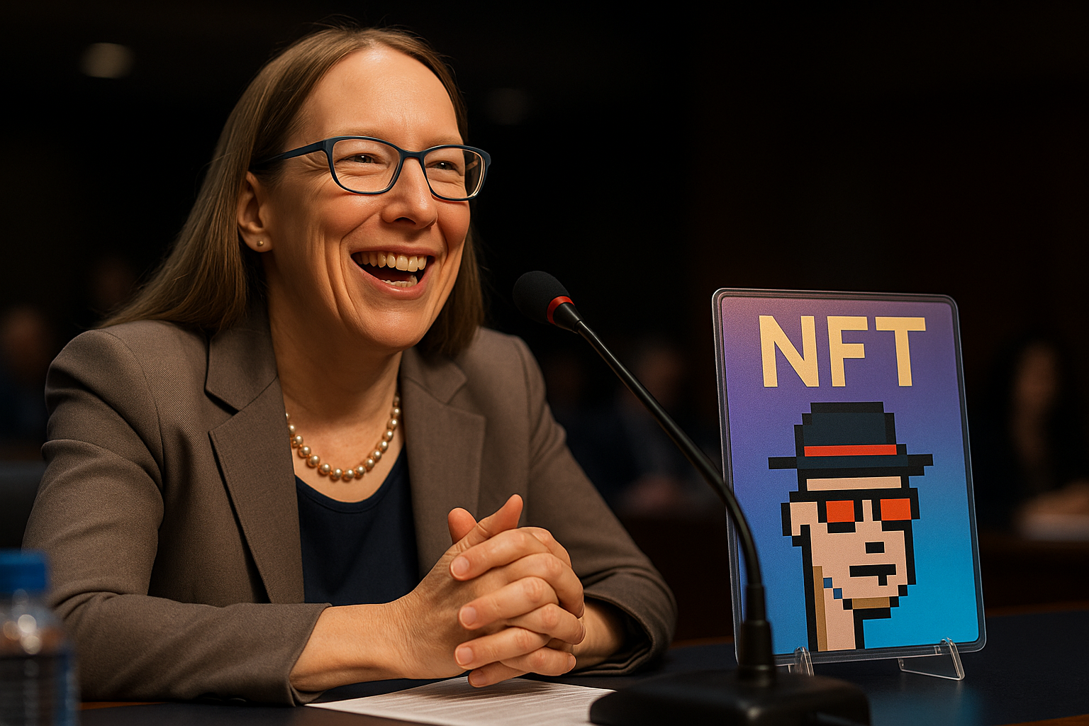 SEC Commissioner Hester Peirce, widely known as “Crypto Mom,” mixed humor with policy insight during a recent speech, joking about launching an NFT collection after her time in government while stressing the need for clear digital asset regulation.