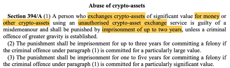 Harsh Penalties for Unlicensed Crypto Service Providers