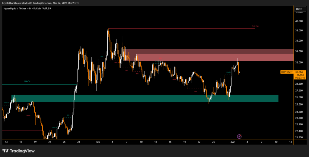 The HYPE token from Hyperliquid climbed roughly 5% over the past 24 hours, outperforming a softer broader crypto market. The move comes as heightened geopolitical tensions in the Middle East triggered a surge in trading activity, particularly in oil-linked futures contracts.