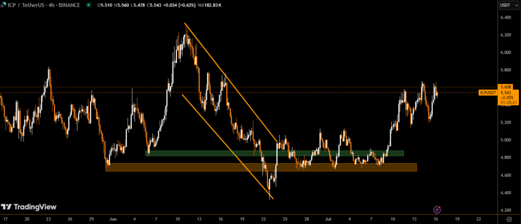 ICP is now trading at $5.4324, holding above intraday lows and preparing to test resistance around $5.40–$5.42, which has previously capped rallies.