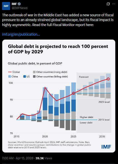 The International Monetary Fund has warned that global public debt could approach 100% of world gross domestic product (GDP) by 2029, raising concerns about fiscal solvency and long-term bond market stability. Under current projections, major economies including the United States and China are expected to remain key contributors to rising debt levels, alongside increased global defense spending.