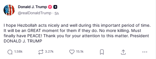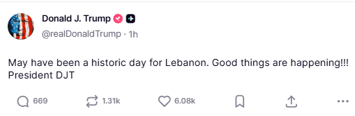 President Donald Trump described the moment as a “historic day” for Lebanon and urged Hezbollah to act “nicely” during the ceasefire period. He also called for an end to hostilities, stating that it was time for “no more killing” and emphasizing the importance of maintaining peace during the fragile truce.