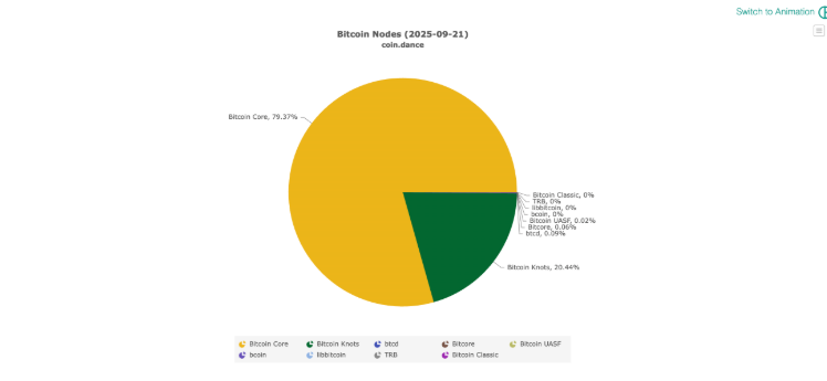 - Bitcoin Knots now powers ~20% of nodes, a staggering rise from just 1% in 2024.