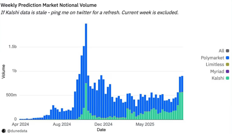 Between September 11 and 17, Kalshi recorded over $500 million in weekly trading volume, according to data tracked on Dune Analytics. The platform also held an average open interest of around $189 million, reflecting a surge in active participation.