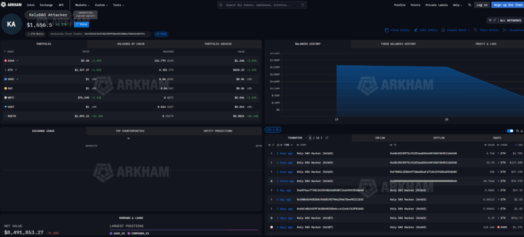 Arkham analytics data shows two large transactions worth about $117 million and $58 million were moved from wallets tied to the exploit during European trading hours on Tuesday. Investigators also identified cross-chain activity, including roughly $1.5 million bridged from Ethereum to Bitcoin through Thorchain, along with an additional $78,000 routed using the privacy-focused protocol Umbra.
