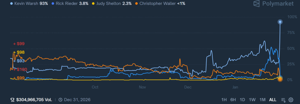Kevin Warsh emerged as the frontrunner for Trump’s Fed chair pick on Polymarket