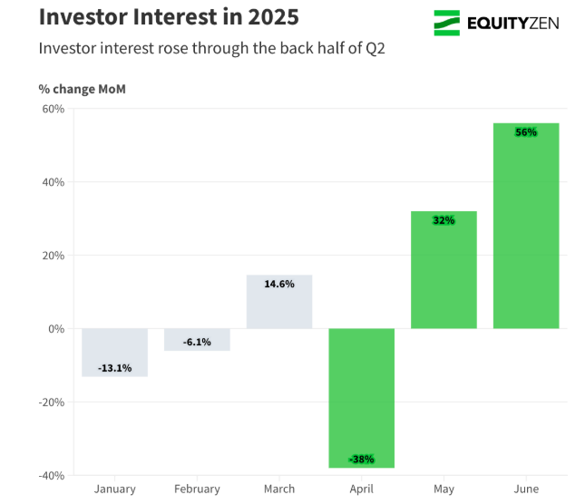 Investor interest in pre-IPO opportunities surged 56% in June, recovering from a 38% decline in April that was triggered by U.S. tariff uncertainties. The bounceback highlights the market’s resilience and growing appetite for early-stage tech investments.