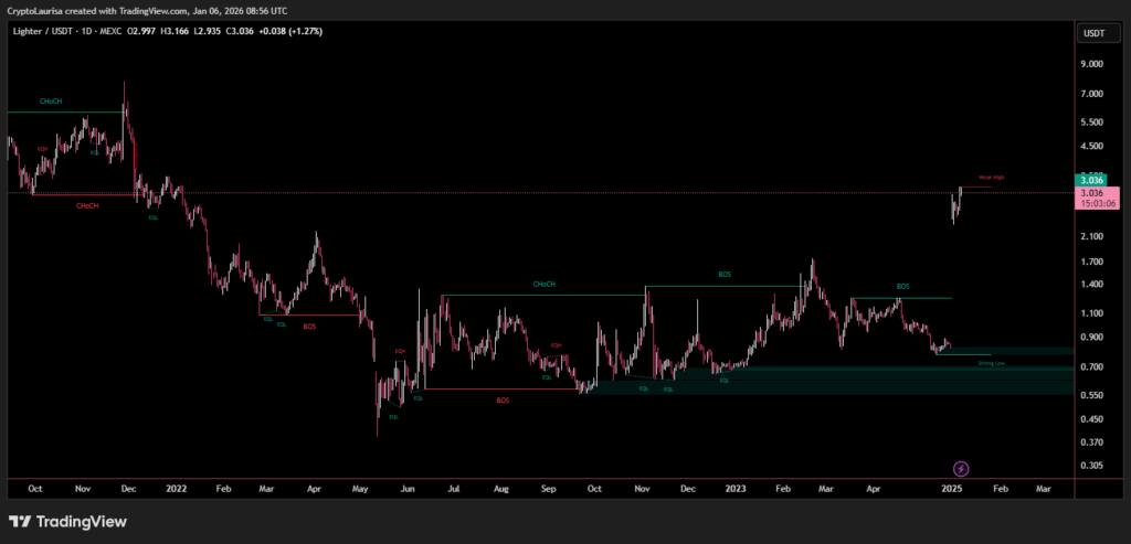 Lighter’s native token posted strong gains at the start of the week as onchain activity sparked speculation around a potential protocol-led buyback. The move highlights growing investor focus on revenue-backed token models within decentralized finance.