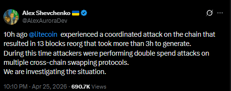 Despite the seriousness of the exploit, Litecoin traded near $56 following the announcement, showing limited immediate market reaction. The incident adds to a broader trend of rising crypto security breaches, with decentralized finance protocols losing more than $750 million to exploits in 2026 through mid-April, including major cross-chain attacks earlier in the year.