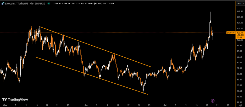 Litecoin (LTC) surged over 10% on July 18, 2025, reaching an intraday high of $111.40, following a groundbreaking announcement by MEI Pharma, a Nasdaq-listed biotech company. The firm revealed plans to raise $100 million via a private stock sale to fund a bold Litecoin treasury strategy, potentially making it the first public company to adopt LTC as a primary reserve asset.