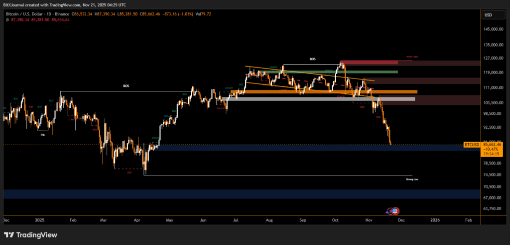 Bitcoin remains near $86,000 as participants assess whether the unwind is nearing completion. Many analysts believe that once market makers restore balance sheets, trading depth should normalize — potentially easing downward pressure.
