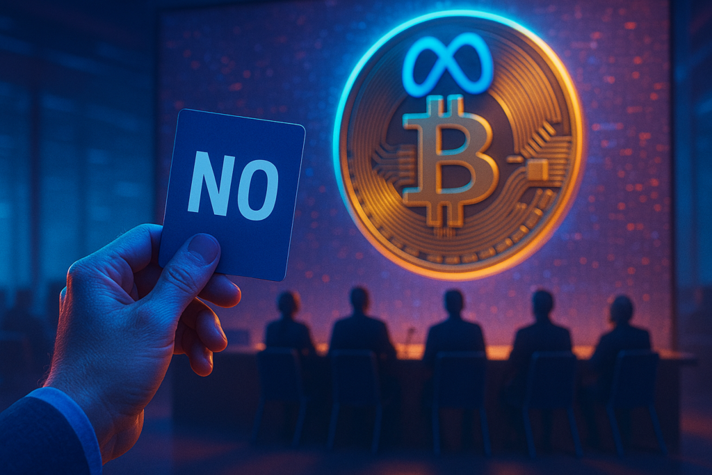 Meta Platforms Inc. (NASDAQ: META) shareholders have overwhelmingly voted down a proposal to explore adding Bitcoin (BTC) to the company’s treasury strategy, effectively shutting the door on a potential shift toward crypto-based asset diversification.