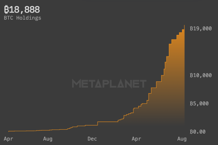 Japanese bitcoin treasury firm Metaplanet has added another 775 BTC worth $93 million to its reserves, reaffirming its bullish stance on the world’s largest cryptocurrency. The acquisition brings the company’s total bitcoin holdings to 18,888 BTC, valued at approximately $2.2 billion at current market prices.