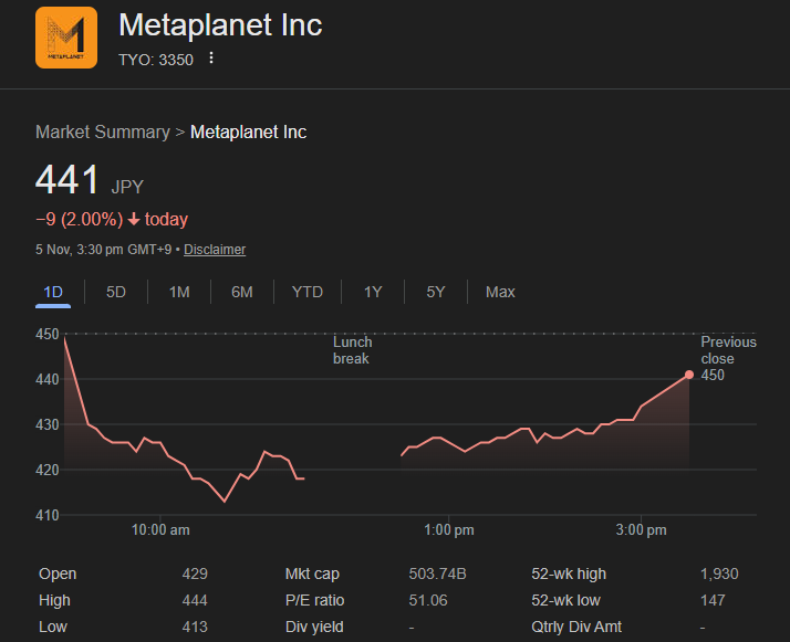 Following the loan announcement, Metaplanet’s shares fell 2%, reflecting cautious investor sentiment amid broader crypto market weakness. Analysts say the company’s strategic focus on Bitcoin-backed financing signals institutional confidence in crypto-collateralized lending models, even during market corrections.