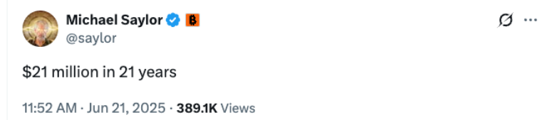 - Michael Saylor predicts Bitcoin will hit $21M by 2046—up from his previous $13M forecast.