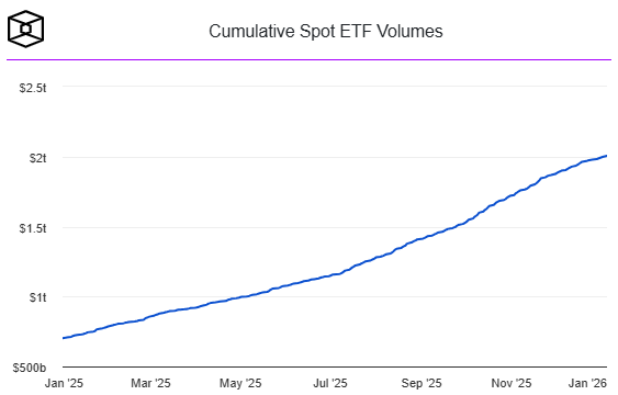 The filings arrive as cumulative U.S. spot crypto ETF trading volume exceeds $2 trillion, with the market accelerating rapidly over recent months. Spot Bitcoin ETFs alone hold over $123.5 billion, representing approximately 6.6% of Bitcoin’s total market capitalization, even as prices remain below $100,000. Regulatory updates, including accelerated SEC approval processes, have facilitated this growth by reducing the lengthy filing timelines previously required.