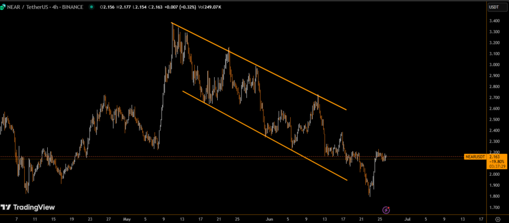 NEAR Protocol (NEAR) experienced sharp volatility on June 25, 2025, with its price plunging nearly 4% to $2.14, only to stage a quick recovery as strong buying interest emerged. The dip created a key support zone, offering a potential accumulation opportunity for traders monitoring the market closely.