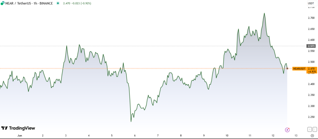 NEAR dropped 8.6%, falling from $2.696 to $2.492 within 24 hours.