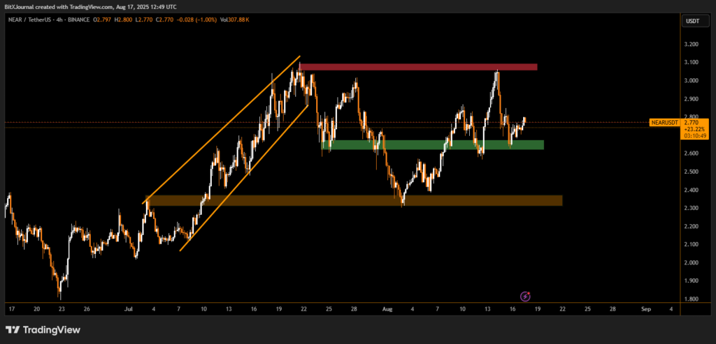 “The consolidation between $2.60 and $3.10 highlights the ongoing battle between buyers and sellers,” According to BITX . “A clean break above $3.10 would likely confirm a bullish continuation, while a drop below $2.60 could expose NEAR to deeper retracements.”