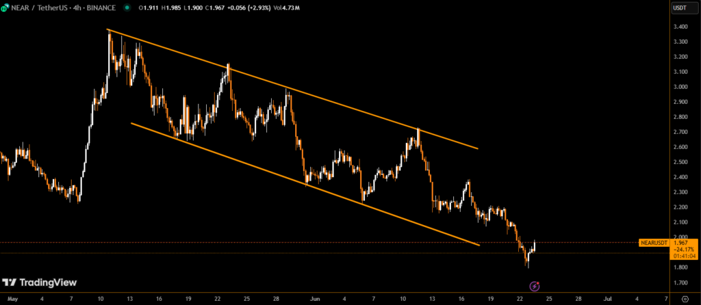 NEAR Protocol is showing clear signs of strength amid macroeconomic uncertainty. With volume-backed support at $1.83 and a developing ascending price channel, the token appears positioned for further gains — provided broader market sentiment remains stable.