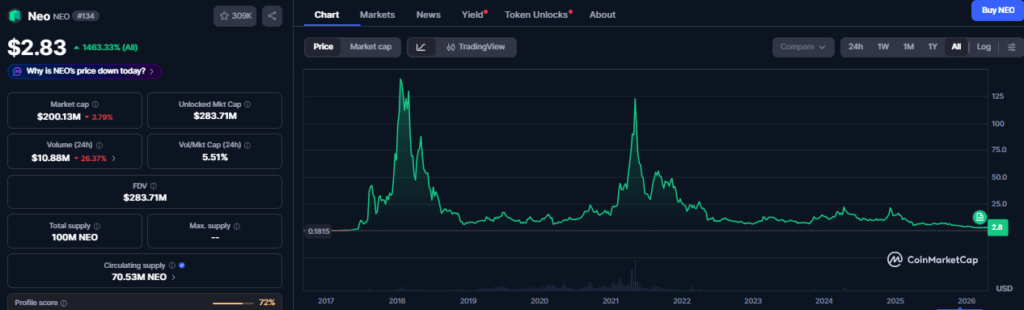 Da Hongfei stated that nearly 85% of the token-based treasury remains under Zhang’s sole control, raising concerns about centralized custody within a decentralized project structure. Meanwhile, the broader Neo treasury is estimated at around $460 million, including Bitcoin, Ethereum, stablecoins, and venture investments.