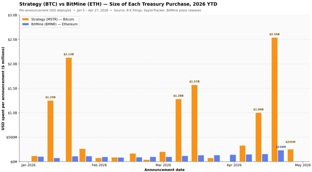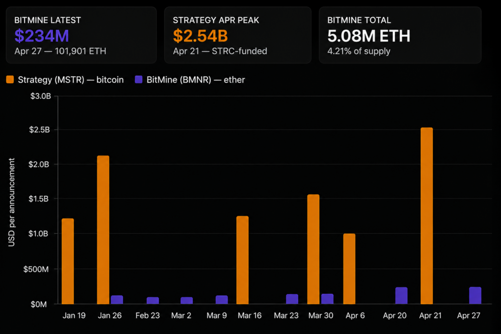 Bitmine Ether Purchases Accelerate, Closing Gap With Strategy’s Bitcoin Buying Pace