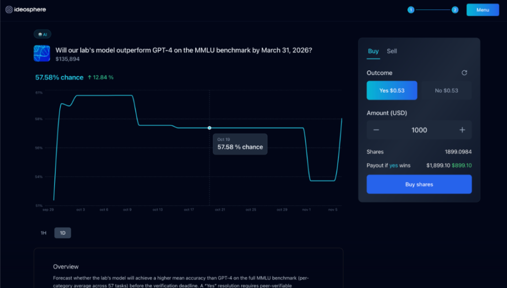 Another emerging model comes from Ideosphere, a DeSci startup building prediction markets tailored for scientific research. These platforms allow communities to bet on hypotheses, creating a market-driven evaluation system.