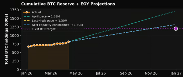 Investor Adam Livingston projects Strategy could accumulate up to 1.2 million BTC by the end of 2026, supported by funding from its preferred stock program. However, analyst Rida Morwa warned that continued reliance on equity issuance could create financial pressure if Bitcoin prices fail to rise significantly.