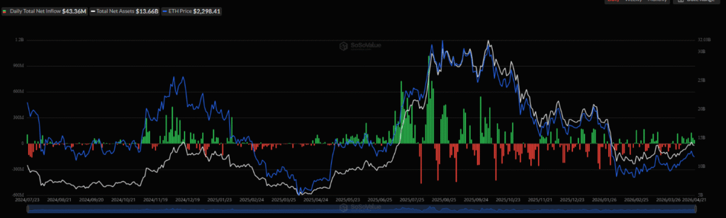 Spot exchange traded funds tied to Ether have recorded ten consecutive days of net inflows, totaling approximately $633 million, signaling renewed investor confidence following earlier market weakness. The steady inflow streak comes after Ether experienced a sharp 42% decline between late January and early February, which temporarily reduced participation across decentralized finance platforms.