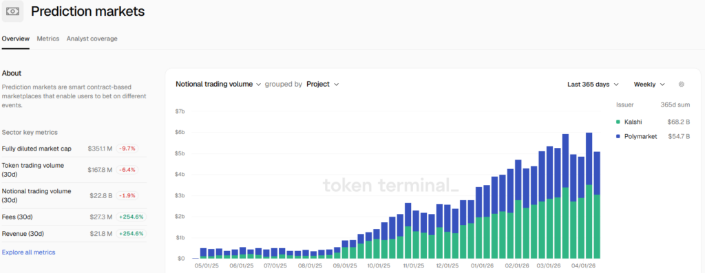 Prediction markets including Polymarket and Kalshi recorded a combined $23.6 billion in trading volume in March, highlighting rapid growth in event-based betting markets.