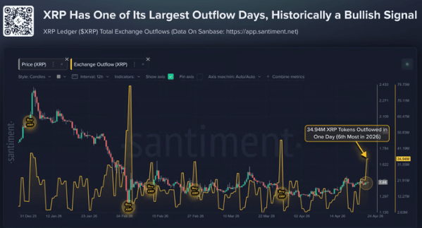 Exchange data also shows that nearly 35 million XRP tokens were withdrawn from trading platforms in one of the largest daily outflows recorded this year. Such movements often reduce immediate selling pressure, tightening available supply and helping stabilize price conditions during consolidation phases.