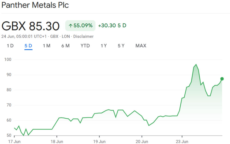 UK-based mineral exploration firm Panther Metals Plc (PALM) jumped 21% on the London Stock Exchange Monday after announcing a £4 million ($5.4 million) Bitcoin treasury strategy. The move marks a pioneering blend of physical commodities and digital assets, aimed at reshaping how natural resource companies fund expansion.
