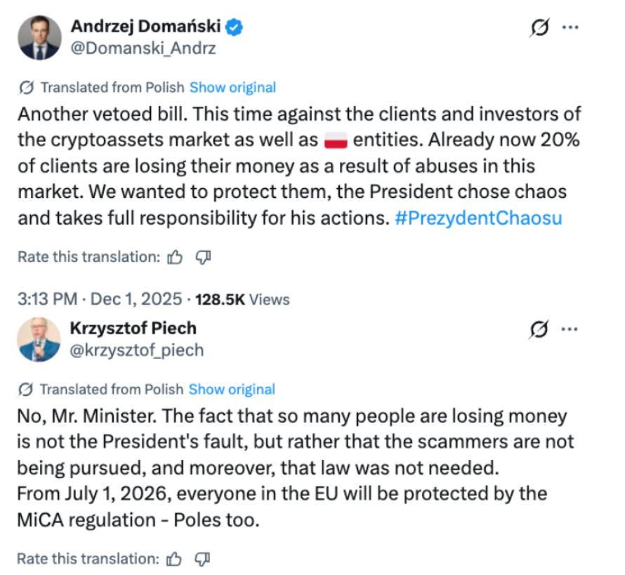 The veto forces lawmakers to revisit the legislation or attempt an override — a process likely to extend the political dispute while leaving Poland’s fast-growing digital-asset sector in regulatory limbo.