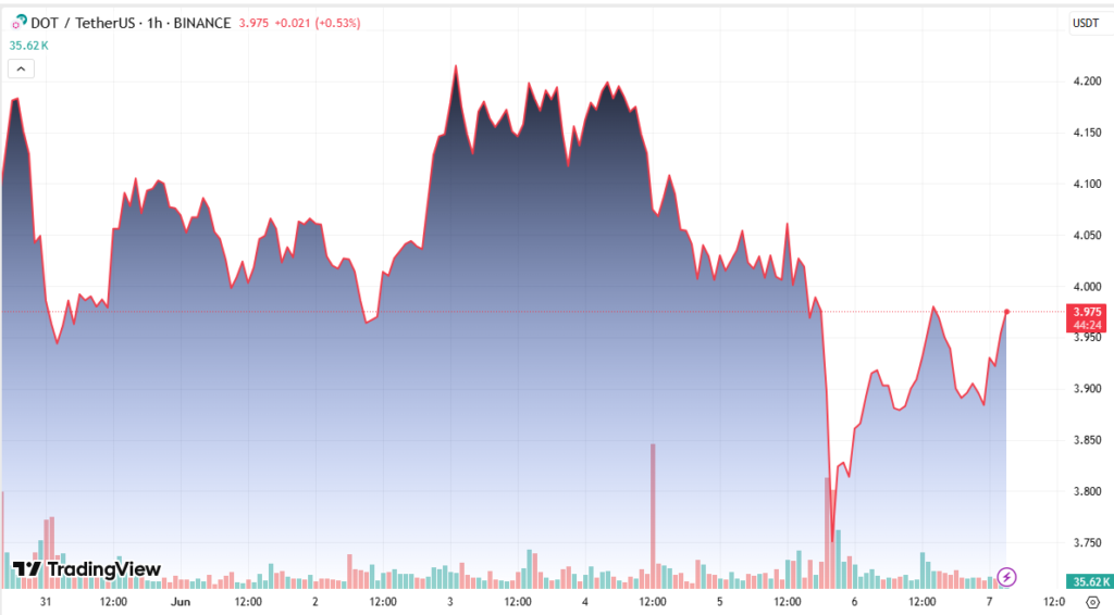The ability of DOT to hold and bounce from the $3.95–$3.96 level highlights growing bullish sentiment and strategic accumulation by buyers.