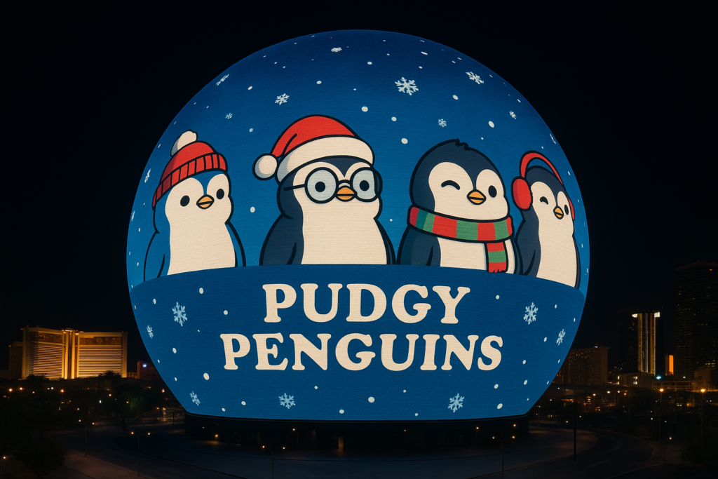 Pudgy Penguins brought its NFT characters to one of the world’s most recognizable entertainment venues during Christmas week, projecting animated penguins across the exterior of the Las Vegas Sphere. The activation went live on Christmas Eve, using the venue’s massive LED display to showcase the brand to millions of holiday visitors along the Las Vegas Strip.