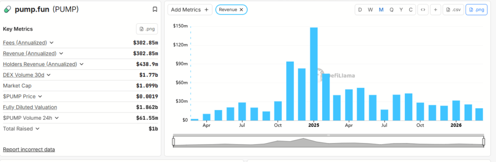 Pump.fun’s monthly revenue chart.