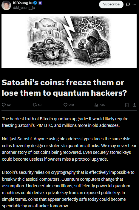 Estimates suggest nearly 7 million BTC could be exposed in a sufficiently advanced quantum scenario. That figure includes roughly 1 million coins widely attributed to Satoshi Nakamoto. At current prices near $67,600, the potentially vulnerable holdings represent about $440 billion in value.