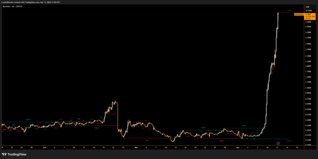 The price of RaveDAO has surged an extraordinary 3,765% over the past seven days, attracting intense attention from traders and market analysts. A large share of the trading activity was concentrated on derivatives markets at Binance and OKX Futures, where combined trading volume reportedly exceeded $13 billion. Such unusually high derivatives volume relative to circulating supply has raised concerns about whether the move reflects genuine demand or coordinated speculative activity.