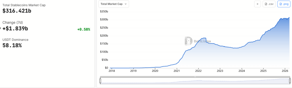 Stablecoin market cap rises above $300 billion.: DefiLlama
