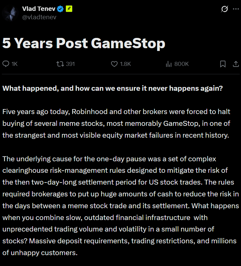 Robinhood’s leadership continues to point to the 2021 trading halts as a turning point. At the time, extreme volatility combined with multi-day settlement cycles forced brokers to post significant collateral, leading to temporary restrictions on popular stocks. While U.S. equities have since moved to 24-hour settlement, residual risks remain during weekends and holidays, when exposure can stretch across several days.