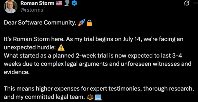 The trial is expected to last up to one month, with key witnesses scheduled to testify in the coming days. A verdict could set a critical precedent for how U.S. law treats developers of blockchain-based privacy protocols.