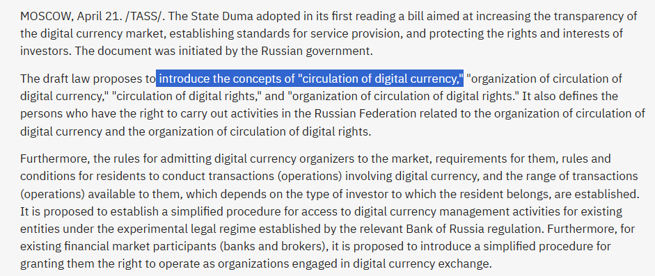 Russia has taken a major step toward formal crypto regulation after its State Duma approved a new cryptocurrency bill in its first reading. According to state media reports, the proposal aims to establish a legal framework for crypto market participants while tightening control over domestic usage.