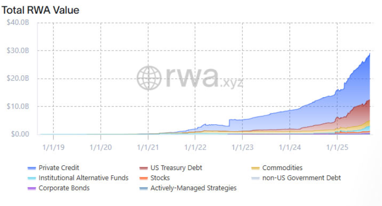 Real-world asset (RWA) tokens surged 11% this week, pushing total onchain value to a new peak of $29 billion. The milestone reflects growing institutional adoption of blockchain-based financial products, with tokenization rapidly reshaping traditional markets.