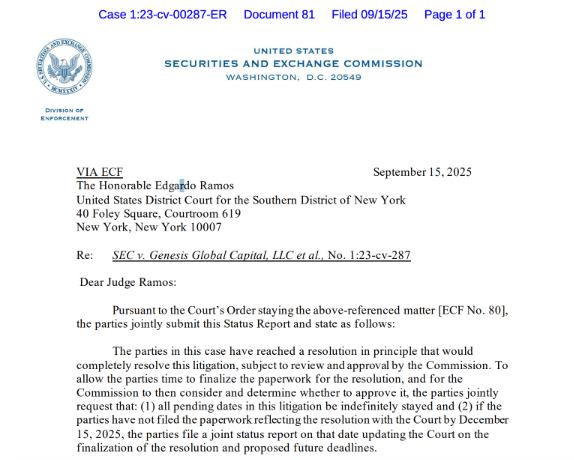 The agreement follows the SEC’s earlier $21 million settlement with Genesis in 2024, signaling that the case may soon reach its conclusion. For Gemini, the resolution would remove a cloud that has hung over the exchange for nearly three years.