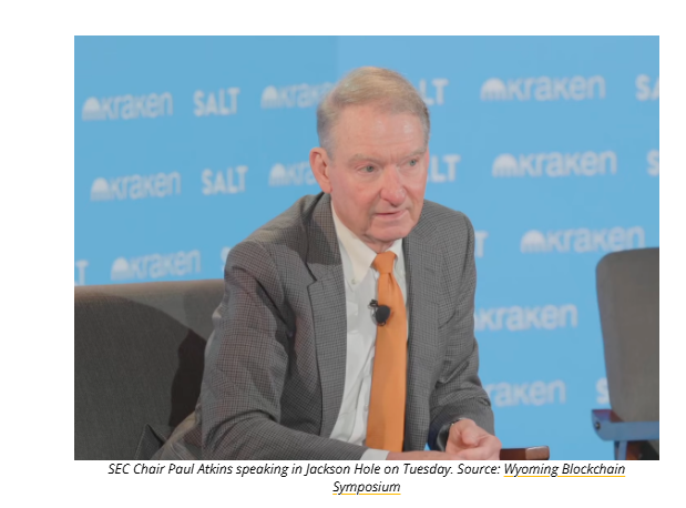 At the Wyoming Blockchain Symposium in Jackson Hole, US Securities and Exchange Commission (SEC) Chair Paul Atkins signaled a significant shift in how the agency views digital assets. Speaking on Tuesday, Atkins stated that in his view, “very few tokens are securities,” a marked departure from the stance taken under his predecessor.
