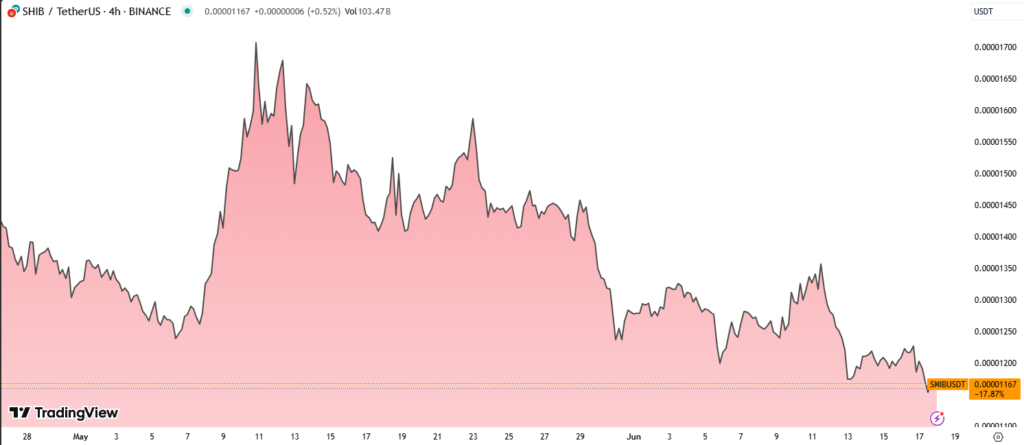 SHIB’s drop aligns with a wider crypto market pullback. Bitcoin fell to $103,800, while Ethereum and Solana also recorded sharp declines. The risk-off sentiment stems from geopolitical fears, global trade tensions, and weakness in the U.S. stock market.